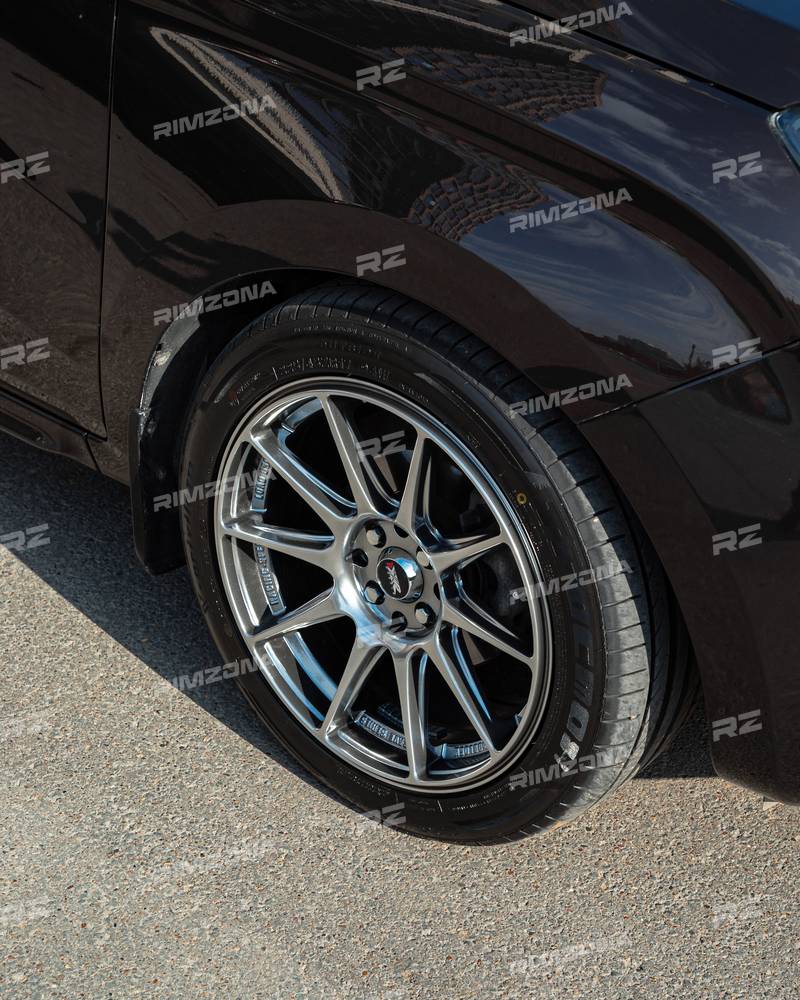 Эти диски раскрывают свою индивидуальность через смелый ритм: массивные спицы с матовым черным покрытием и тонкими серебристыми вкраплениями создают эффект стального вихря, идеально подчеркивающего угловатые формы X-Ray и его хромированные акценты.